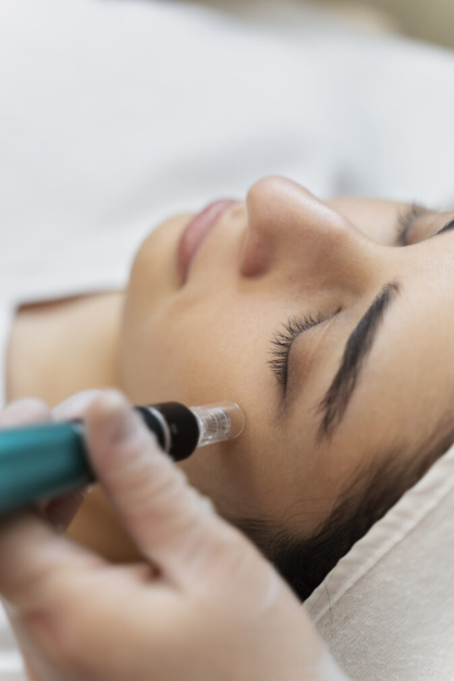 Microneedling is a cosmetic procedure using a hand-held device with tiny, sterile needles to create microscopic injuries in the skin, which triggers the body’s natural wound healing process. This process stimulates the production of new collagen and elastin, vital proteins that improve skin texture and elasticity. It is used to treat conditions like wrinkles, scarring, sun damage, and hyperpigmentation.